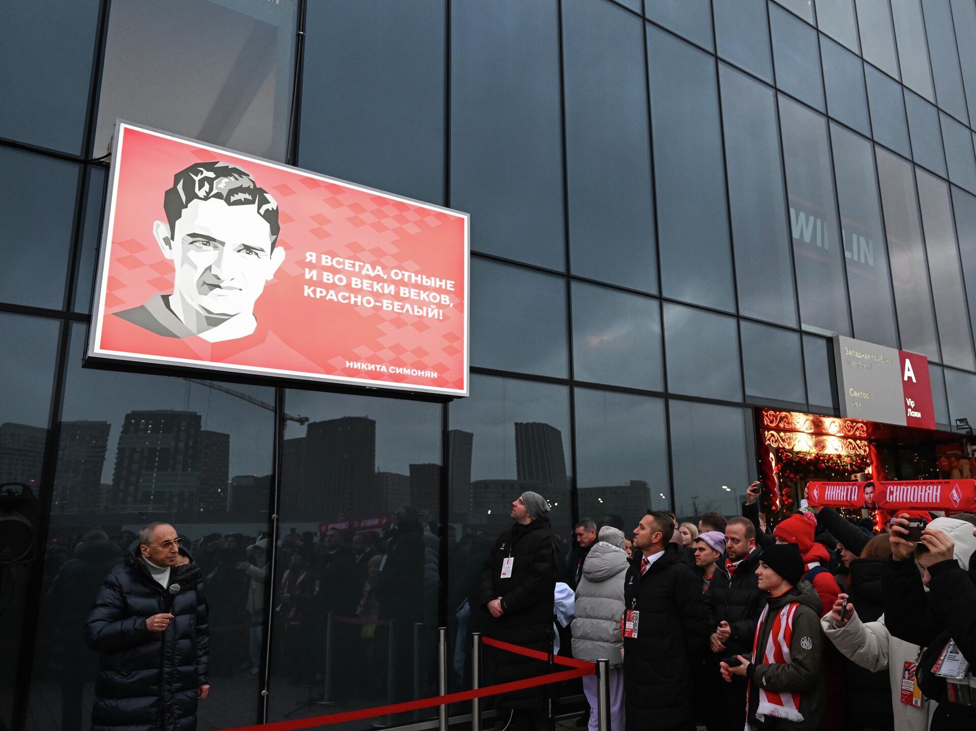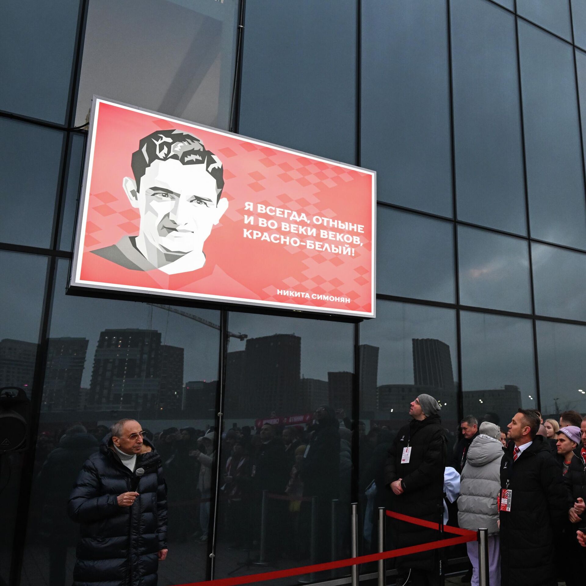 Արարողությունը տեղի է ունեցել «կարմիր-սպիտակների» մարզադաշտում՝ Ռուսաստանի Պրեմիեր լիգայի (ՌՊԼ) 18-րդ տուրում Մոսկվայի «Դինամոյի» դեմ խաղից առաջ։ Արարողությանը մասնակցել են «Սպարտակի» նախկին խաղացողի դուստրը՝ Վիկտորյա Սիմոնյանը, թիմի նախկին գլխավոր մարզիչ Օլեգ Ռոմանցևը և Ռուսաստանի ֆուտբոլի վետերանների միության ղեկավար Ալեքսանդր Միրզոյանը: