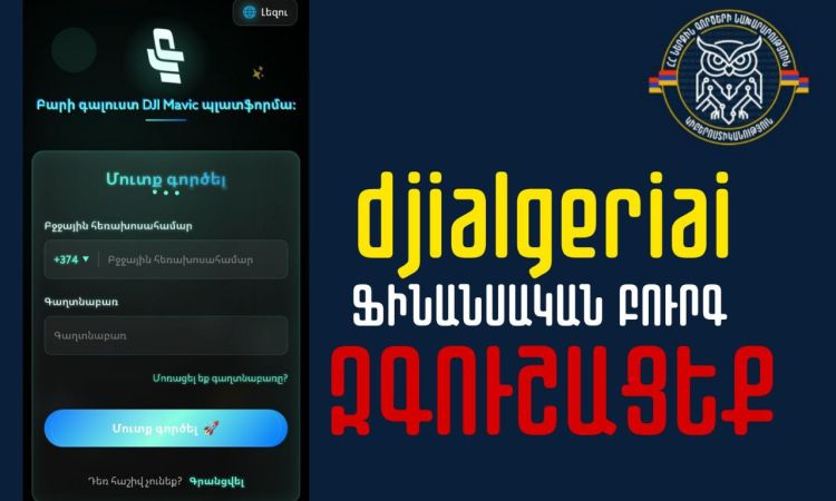 Նոր ֆինանսական բուրգ է տարածվում, այս անգամ djialgeriai անվանումով, որը առաջարկում է ներդնել գումարներ դռոնների ոլորտում: