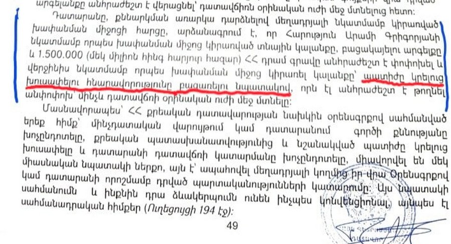 Հարեւանային ինստիտուտի ներդրմամբ կկարգավորվի նաեւ «կանխարգելիչ հայցերը», երբ հարեւանն անբարեխիղճ է, երբ դրանով իսկ կվերականգնվեն հարեւանի խախտված իրավունքները, տուժող հարեւանն իրավունք կունենա պահանջներ ներկայացնել: Այլ կերպ ասած` նրա բողոքը ականջի հետեւ չեն գցի համատիրությունը, թաղային իշխանությունները: