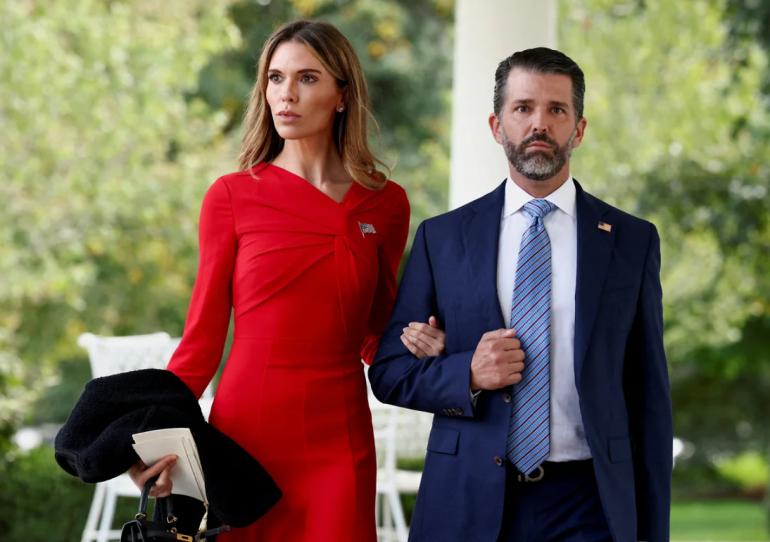 Page Six-ի տվյալներով՝ ամերիկացի նախագահի 47-ամյա որդին և 38-ամյա մոդելը սկսել են հանդիպել 2024 թվականին։ Նախկինում նա հարաբերությունների մեջ էր Fox News-ի նախկին հաղորդավարուհի Քիմբերլի Գիլֆոյլի հետ։ Դոնալդ Թրամփ կրտսերը նախկինում ամուսնացած էրՎանեսա Հեյդոնի հետ։ Նրանք ամուսնալուծվել են 12 տարվա ամուսնությունից հետո՝ 2018 թվականին։ Զույգն ունի հինգ երեխա։