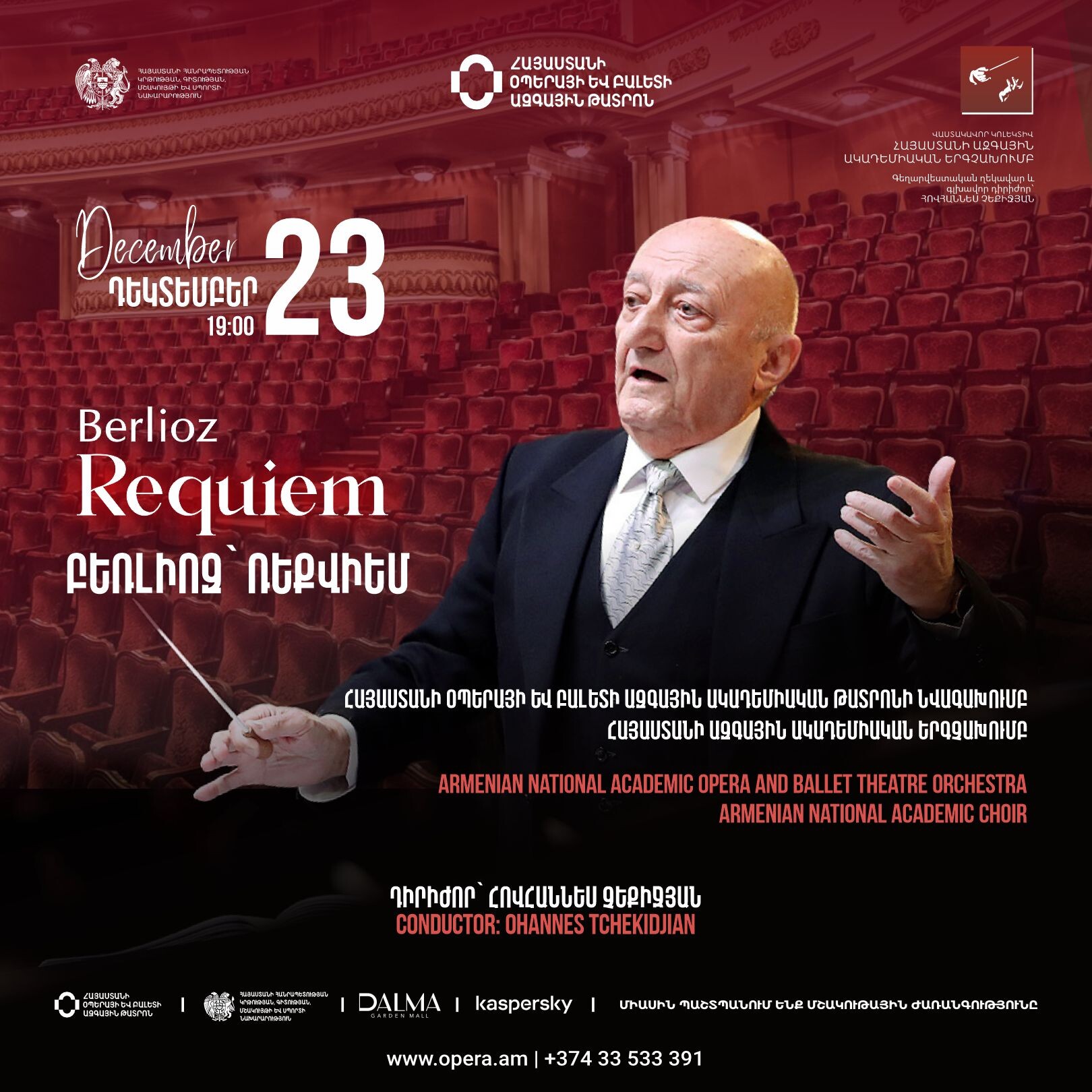 Հովհաննես Չեքիջյանի ղեկավարությամբ Երևանի օպերային թատրոնում կհնչի Բեռլիոզի «Ռեքվիեմ»-ը December 17, 2025 by Media Հայաստանի ազգային ակադեմիական երգչախմբի և Հայաստանի օպերայի և բալետի ազգային թատրոնի նվագախմբի մասնակցությամբ դեկտեմբերի 23-ին Ալ. Սպենդիարյանի անվան օպերայի և…