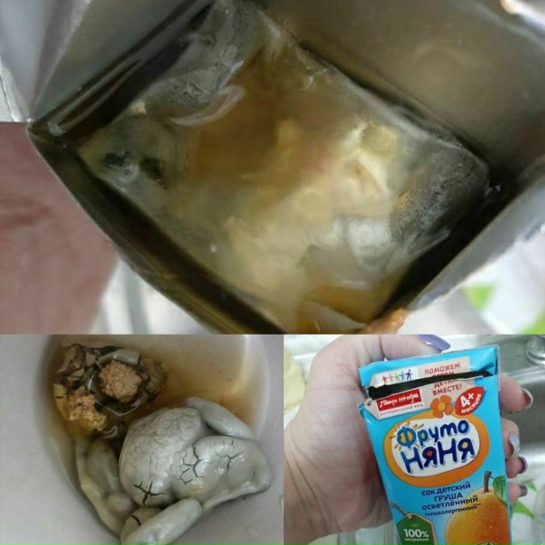 Դարիայի պատմածով, իր դուստրը խմել է հյութի կեսը, բայց հետո հրաժարվել է խմել այն։ Սիբիրցի կինը որոշել է փորձել հյութը և ապշել է դրա թթու համից և տհաճ հոտից։ Փաթեթավորումը զննելիս նա տուփի ներքևի և կողմերի վրա զգալի քանակությամբ բորբոս է հայտնաբերել։