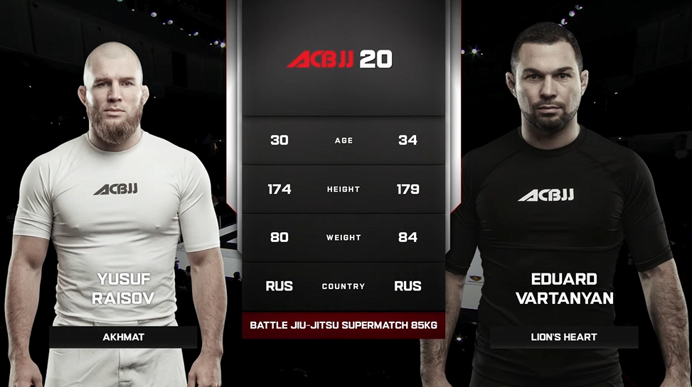 ACBJJ 20-ի համագլխավոր իրադարձության շրջանակում հանդիպեցին Յուսուֆ Ռաիսովն ու Էդուարդ Վարդանյանը (մարտական ջիու-ջիցու, 85 կգ): Մարզիկները նախկինում արդեն մրցել էին միմյանց դեմ MMA-ի կանոններով, որտեղ ևս ուժեղ էր գտնվել Վարդանյանը։