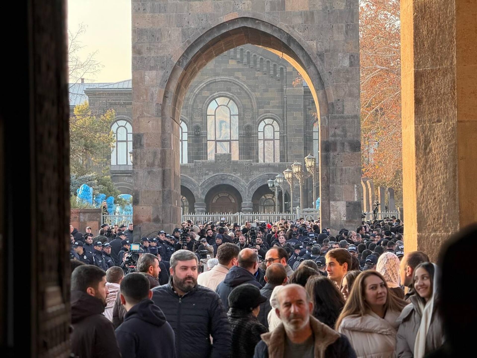 ԵՐԵՎԱՆ, 18 դեկտեմբերի – Sputnik. Մայր աթոռ Սուրբ Էջմիածնի տարածքում այս պահին հարյուրավոր մարդիկ են հավաքվել։ Sputnik Արմենիայի թղթակիցը հայտնում է, որ մի կողմում հավաքվել են եկեղեցու աջակիցները, մյուս կողմում` կաթողիկոսի հրաժարականը պահանջող եպիսկոպոսների և հակաեղեկեցական արշավ սկսած Նիկոլ Փաշինյանի կողմնակիցները։Գարեգին Բ–ի հրաժարականը պահանջող 10 եպիսկոպոսները պատրաստվում են ժամը 17:00-ին գնալ Մայր աթոռ։ Միաժամանակ Արագածոտնի թեմը հայտնել է, որ դեկտեմբերի 18-ին Բյուրականի Սուրբ Հովհաննես եկեղեցում նախատեսված միասնական ժամերգությունը տեղափոխվում է և տեղի է ունենալու Մայր աթոռ Սուրբ Էջմիածնում այսօր՝ ժամը 17:00-ին: Բազմաթիվ քաղաքացիներ, հանրային, քաղաքական գործիչներ հայտարարել են, որ Մայր աթոռ են գնալու՝ ի պաշտպանություն կաթողիկոսի և եկեղեցու։ ՀՀ ՆԳՆ-ն էլ այսօր առավոտյան հորդորեց զերծ մնալ սադրիչ գործողություններից` նշելով, որ իրականացվելու են օրենքով իրենց վերապահված գործառույթները։Հավատացյալ ժողովուրդը հավաքվել է Մայր տաճարի մուտքի մոտ և սպասում է Ամենայն հայոց կաթողիկոս Գարեգին Երկրորդին։ Նա հոգևորականների ուղեկցությամբ պետք է գա ժամերգության։ Հնչում է հայրապետի պահպանության մաղթերգը։ Հակաեկեղեցական արշավի կողմնակիցները բղավում են` «հեռացիր», բայց նրանց ձայնը խլացնում են հավատացյալների վանկարակումները. «Սրբազան, սրբազան, վեհափառ»։Հիշեցնենք` տևական ժամանակ է` ՀՀ իշխանությունը արշավ է սկսել եկեղեցու ու հատկապես կաթողիկոսի դեմ։ Ճաղերի հետևում են «Սրբազան պայքար» շարժման առաջնորդ Բագրատ արքեպիսկոպոս Գալստանյանը, Շիրակի թեմի առաջնորդ Միքայել արքեպիսկոպոս Աջապահյանը, Արագածոտնի թեմի առաջնորդ Մկրտիչ սրբազանը, Մայր աթոռի դիվանապետ Արշակ արքեպիսկոպոս Խաչատրյանը։