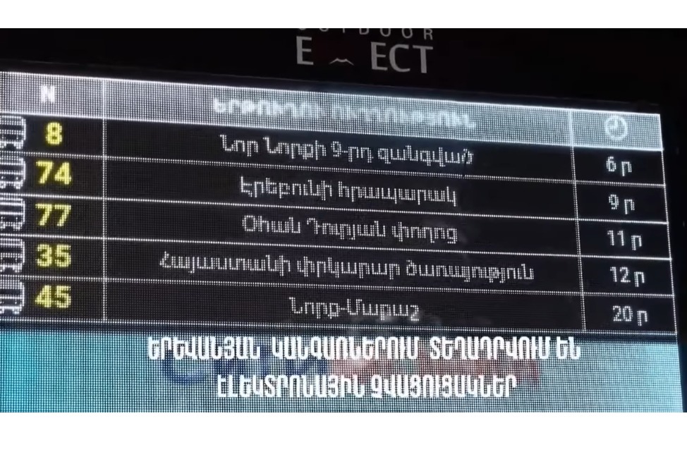 Մայրաքաղաքի 3 վարչական շրջանում տեղադրված են էլեկտրոնային չվացուցակներ
