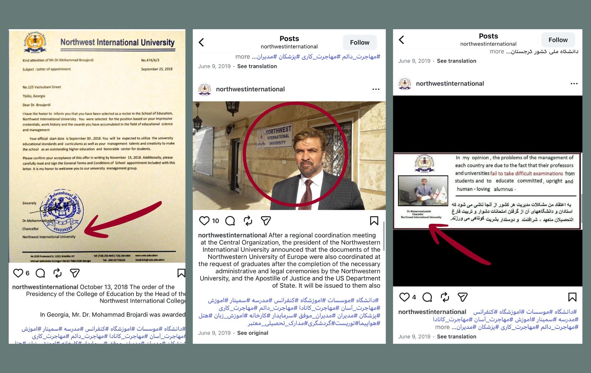 Իրանցի Մոհամմադալի Մորշեդին ներկայանում է որպես North West International University (Հյուսիսարևմտյան միջազգային համալսարան, NWIU)-ի ղեկավար։ Նա տարբեր հարթակներում շահարկում է Հայաստանի անունը՝ նշելով, թե իբր «համալսարանը» հիմնադրվել և գտնվում է Հայաստանում, ունի օրինական գրանցում և ԿԳՄՍ նախարարության կողմից տրված լիցենզիա։ Ենթադրյալ համալսարանի կայքում նշվում է, որ այն ներառված է Հայաստանի բուհերի ցանկում։ Թեև Մոհամմադալին Հայաստանում երկու ընկերություն է գրանցել, դրանք ոչ մի կրթական գործունեություն չեն իրականացնում։ Փաստացի, նման համալսարան Հայաստանում գոյություն չունի, ԿԳՄՍ նախարարությունը որևէ լիցենզիա չի տվել նրան։