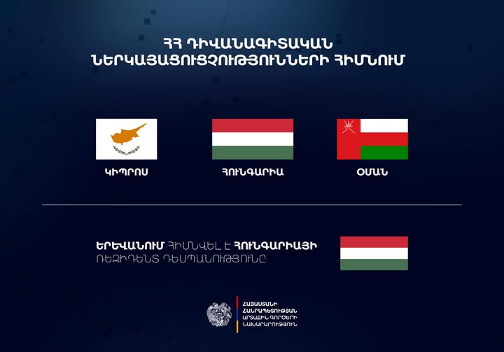 2025-ին Հայաստանի նոր ռեզիդենտ դեսպանություններ են հիմնվել Կիպրոսում, Հունգարիայում, Օմանում: