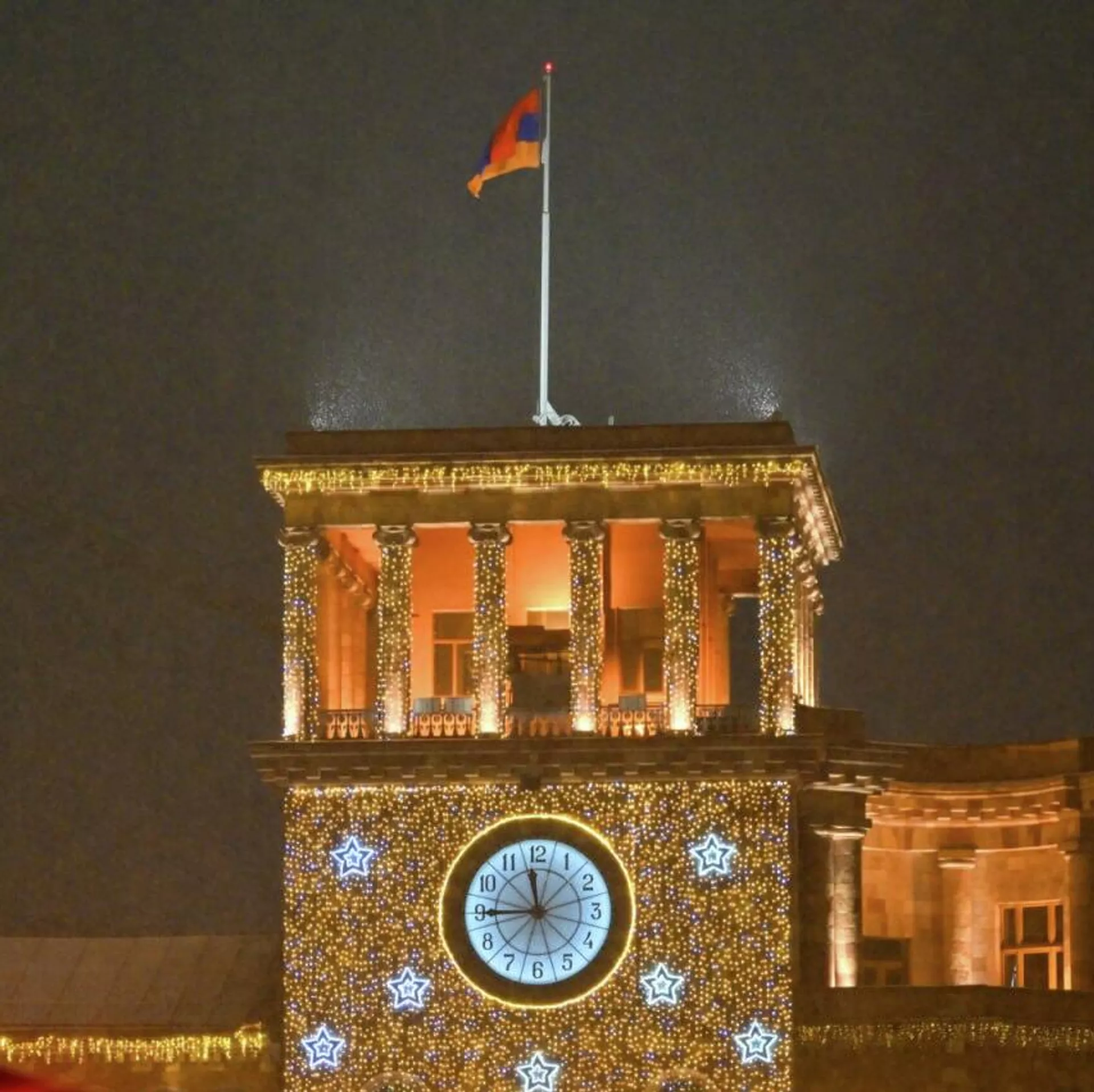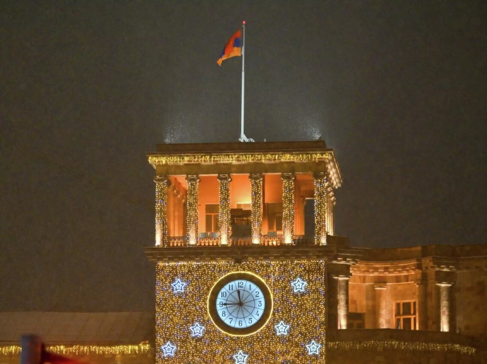 Լապտերների տաք լույսը միախառնվում է տեղացող ձյան հետ՝ Հանրապետության հրապարակը վերածելով հեքիաթային տեսարանի: