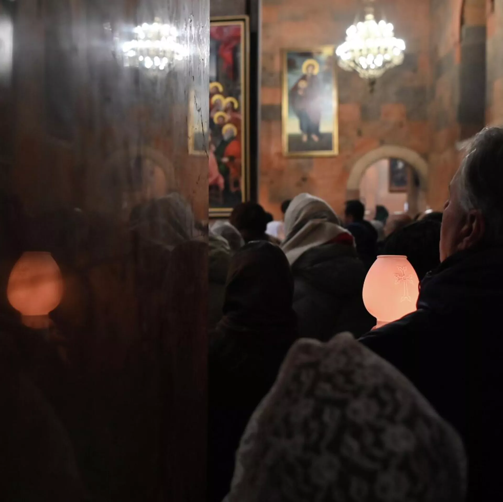 Հավատացյալները մասնակցում են Սուրբ ծնունդի պատարագին