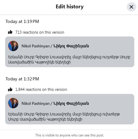 Ուշագրավ է, որ Փաշինյանի էջում էլ միջոցառումը ներկայացվել է որպես «ուղտերթ», ապա րոպեներ անց ուղղել են։