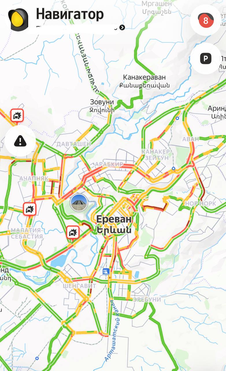 Երևանում գրեթե բոլոր վարչական շրջաններում այս պահին 8 բալանոց խցանում է՝ ձյան և սառած փողոցների պատճառով։