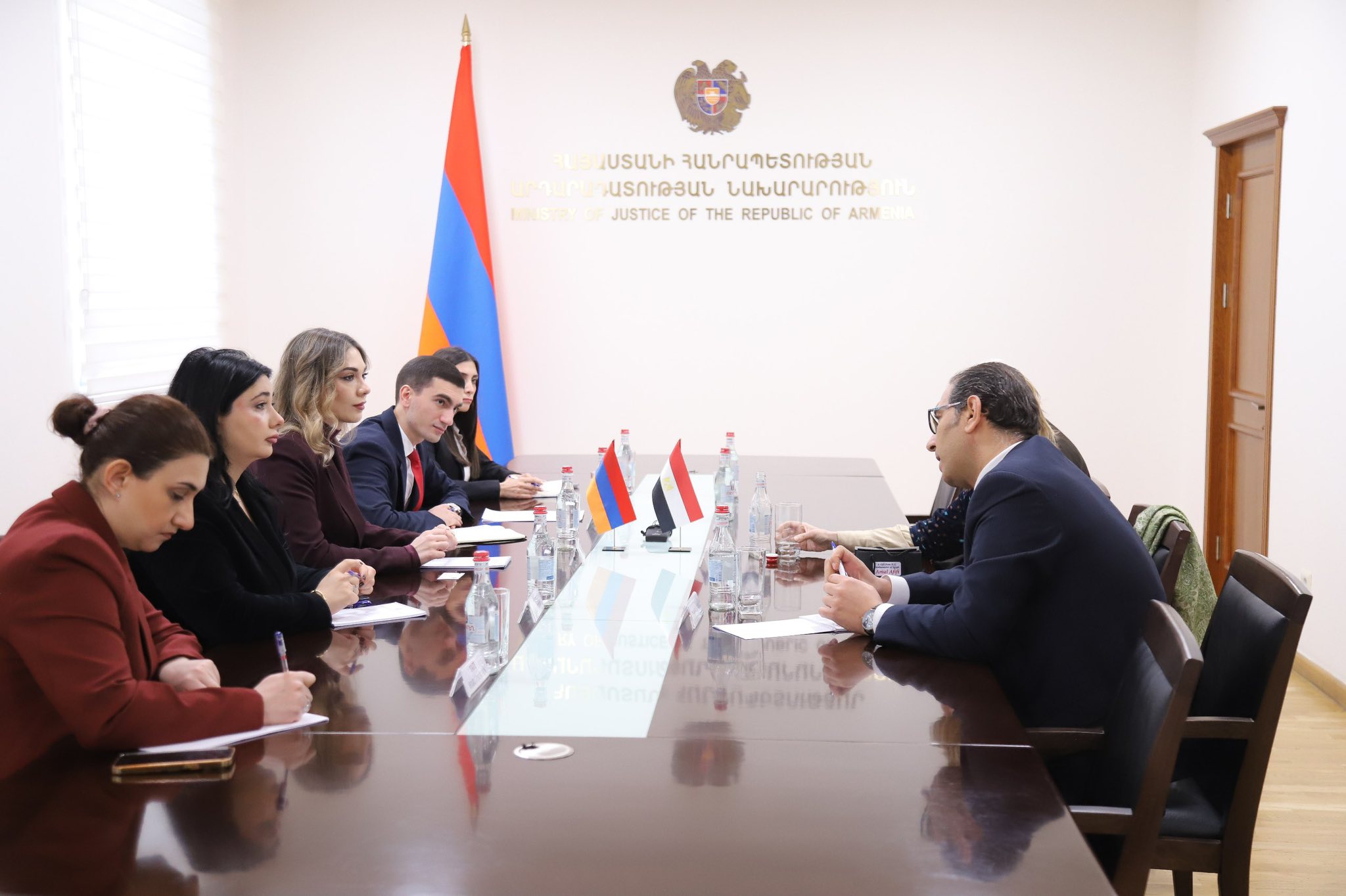 Հանդիպման ընթացքում քննարկվել է «Հայաստանի Հանրապետության և Եգիպտոսի Արաբական Հանրապետության միջև քաղաքացիական և առևտրային գործերով փոխադարձ իրավական օգնության մասին» պայմանագրի նախագիծը։