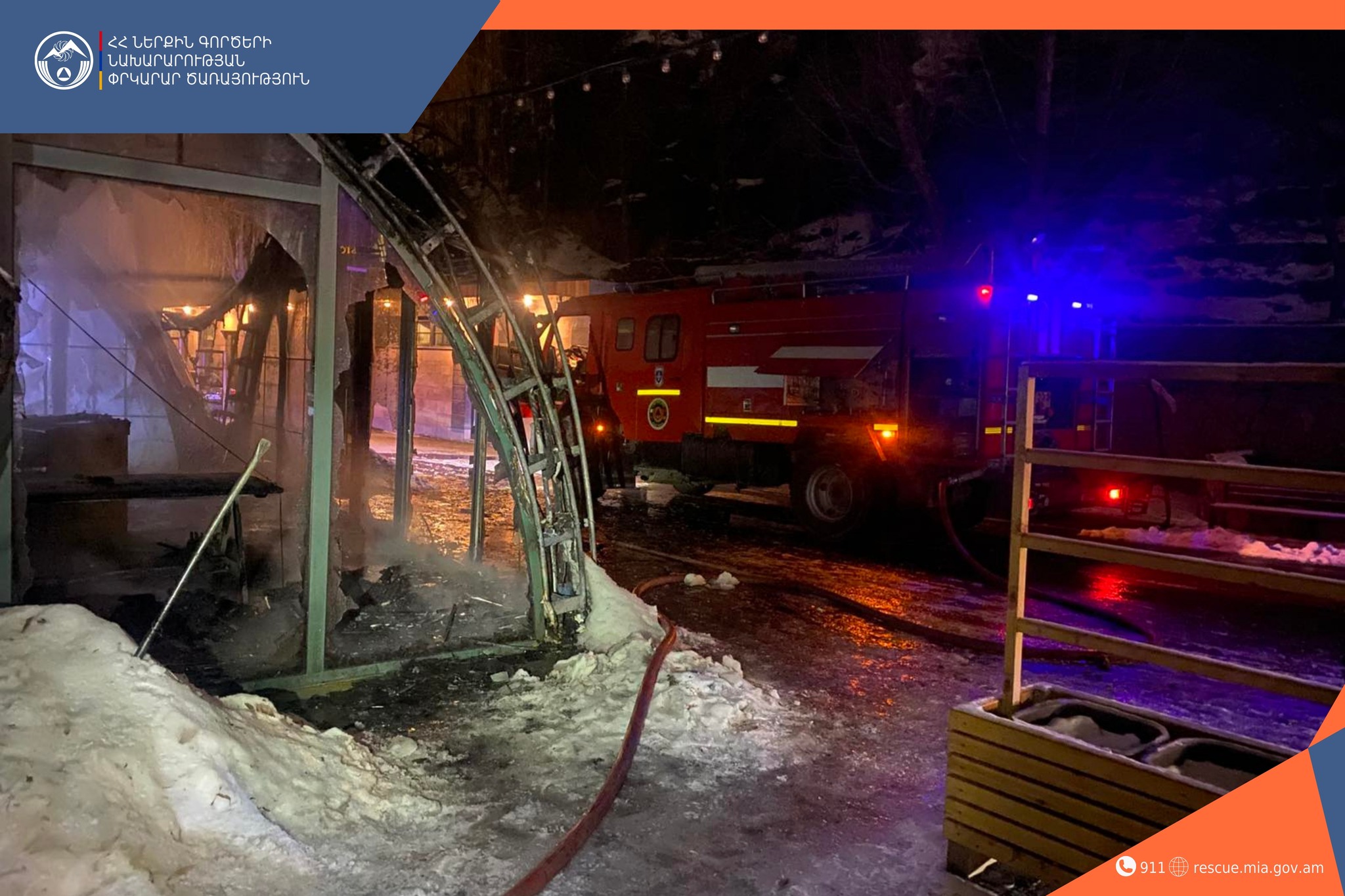Հրդեհը մեկուսացվել է ժամը 21։40-ին, մարվել՝ 22։06-ին։ Այրվել է պոլիէթիլենով ծածկված տաղավարը (մոտ 50 քմ)՝ գույքով։