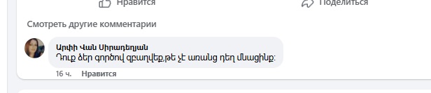 Միայն ֆեյսբուքյան օգտատերերից մեկը փորձել է նախարարին ուշքի բերել և մեկնաբանություն է թողել՝ «Դուք ձեր գործով զբաղվեք, թե չէ առանց դեղ մնացինք»։