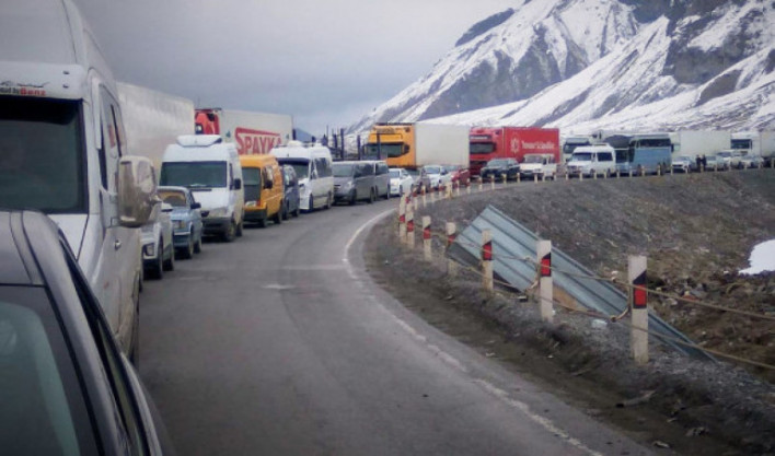 Մցխեթա-Ստեփանծմինդա-Լարս միջազգային նշանակության ավտոմոբիլային ճանապարհի Գուդաուրի-Կոբի հատվածը բաց է բոլոր տրանսպորտային միջոցների համար, բայց խցանումները չեն վերանում եղանակային վատ պայմանների պատճառով։