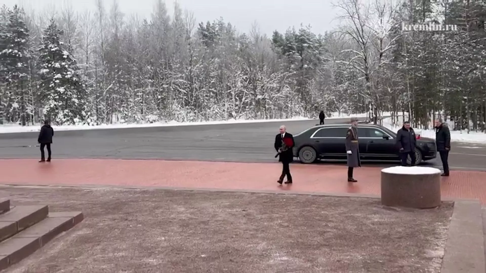 Հուշահամալիրում Պուտինին դիմավորել են Հյուսիս-Արևմտյան դաշնային շրջանում ՌԴ նախագահի ներկայացուցիչ Իգոր Ռուդենյան և Սանկտ Պետերբուրգի մարզպետ Ալեքսանդր Բեգլովը: Մինչ հուշակոթող մտնելը նախագահն անցել է Փառքի ծառուղով։