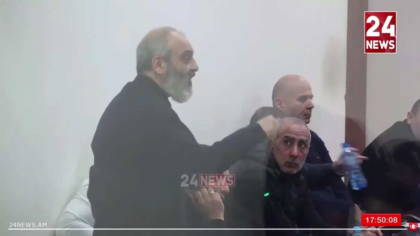«Էս գործն ամբողջության մեջ բանաձևված է այս անպատասխանտու մարդու խոսքում։ Եվս մեկ զրպարտիչ, ևս մեկ ստախոս։ Եթե հիմա դատարան գնանք այս խոսքի համար, կասի` ես քաղաքական գնահատական եմ տվել, վերացական բաներ եմ ասել։ Հիմա եթե ես այստեղ ինչ ուզեմ ասեմ, հետո էլ ասեմ` քաղաքական գնահատական եմ տվել, կընդունվի՞ ձեր կողմից»,– ասաց հոգևորականը` դիմելով դատարանին։