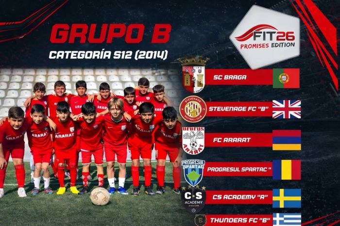 Մինչեւ 12 տարեկանների B խմբում «Արարատի» մրցակիցները կլինեն՝ «Բրագա», «Սթիվենիջ Բ», «Պրոգրեսուլ Սպարտակ», «CS Ակադեմիա» եւ «Թանդերս Բ » թիմերը: