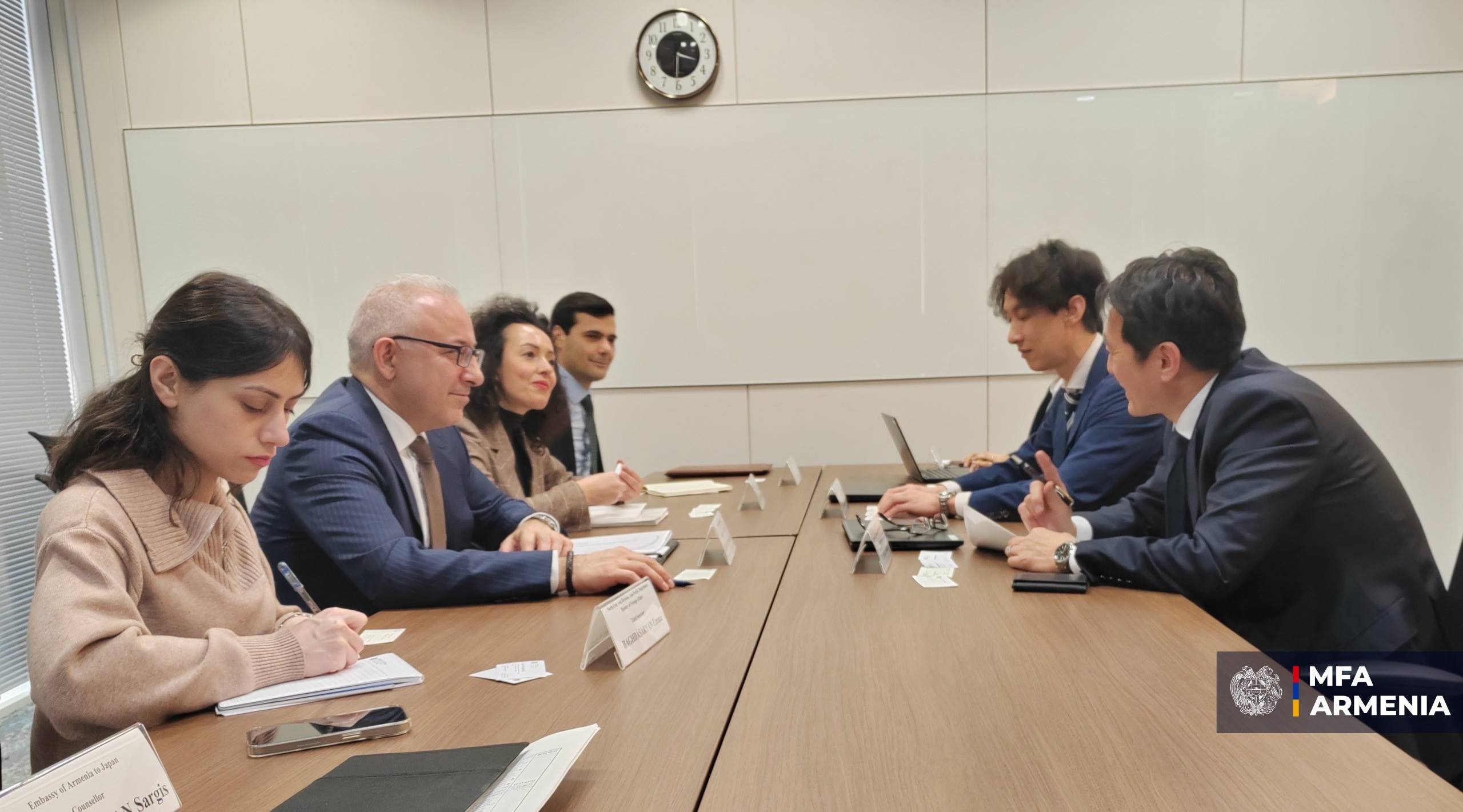 Փետրվարի 4-ին Ճապոնիա կատարած աշխատանքային այցի շրջանակներում ՀՀ ԱԳ նախարարի տեղակալ Մնացական Սաֆարյանը հանդիպումներ է ունեցել Ճապոնիայի միջազգային համագործակցության գործակալության (JICA) Կենտրոնական Ասիայի և Կովկասի վարչության պետ Ֆուսատո Տանակայի, ինչպես նաև Ճապոնիայի գործարար ասոցիացիայի (ROTOBO) Գործադիր տնօրեն Կյոիչի Սուզուկիի հետ։ Այդ մասին հայտնում են ԱԳՆ-ից: