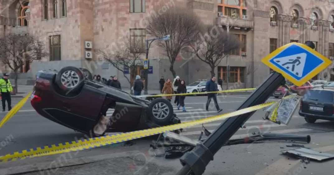 Այսօր՝ փետրվարի 6-ին, խոշոր ավտովթար է տեղի ունեցել Երևանում։ Ժամը 08:00-ի սահմաններում «Honda» մակնիշի ավտոմեքենան Հանրապետության հրապարակում, դեպի Տիգրան Մեծի պողոտա ընթանալիս, ՀՀ կառավարության վարչական շենքի դիմաց բախվել է ճանապարհի թույլատրելի հատվածում կայանված «Lexus» մակնիշի ավտոմեքենային, ապա առաջ ընթացել, անցել բազալտե եզրաքարի ու կանաչ գազոնի վրայով, բախվել հետիոտնի համար նախատեսված ու տեղադրված լուսակիրին և ցուցանակին, կոտրել այն և գլխիվայր շրջվել՝ հայտնվելով հետիոտնային անցման վրա։
