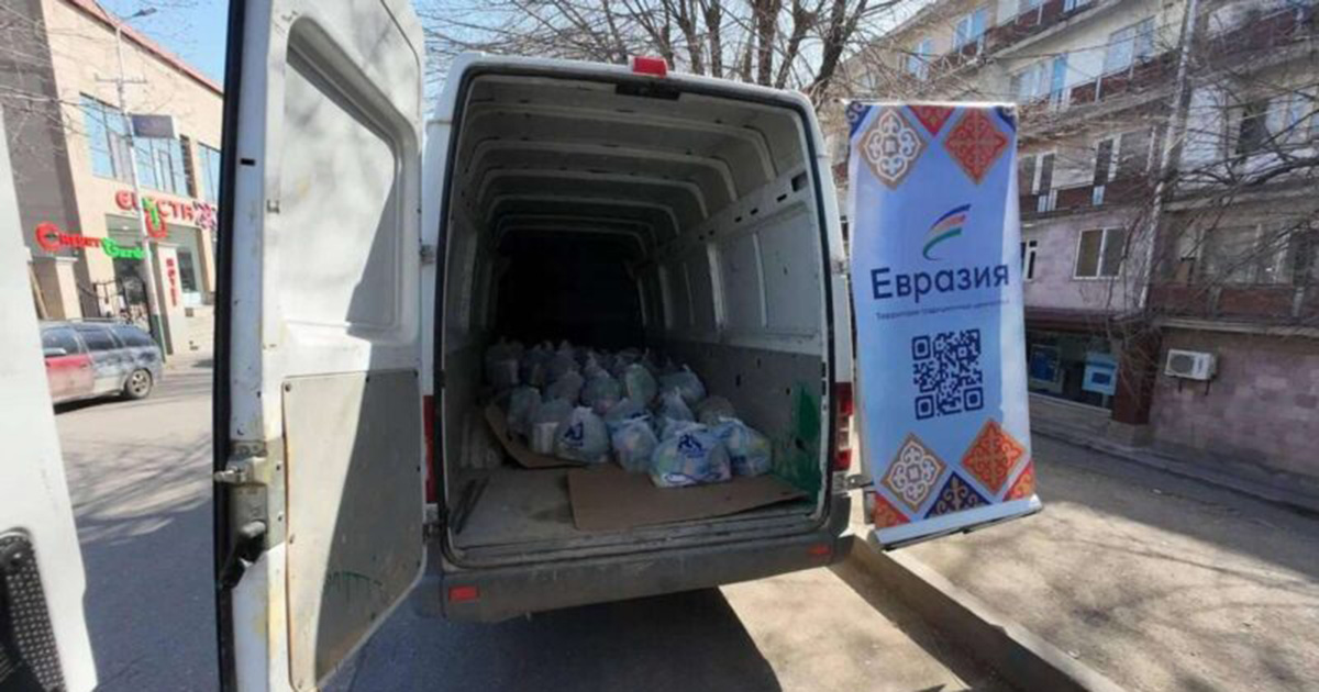 Լեռնային Ղարաբաղից տեղահանվածներին աջակցող մարդասիրական ակցիան իրականացնում է «Եվրասիա» ՀԿ–ն` «Ռուսաստանի մարդասիրական առաքելություն» ՀԿ–ի հետ համատեղ, «Ռոսսոտրուդնիչեստվոյի» աջակցությամբ։