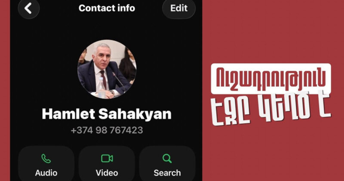 ՊԵԿ-ից հայտնում են, որ Պետական եկամուտների կոմիտեի նախագահի տեղակալ Համլետ Սահակյանի անունով WhatsApp հավելվածում ստեղծվել է կեղծ օգտահաշիվ (լուսանկարը կցվում է), որով տարբեր անձանց ուղարկվում են հաղորդագրություններ։ Հնարավոր է լինեն նաև այլ համարներից ստեղծված օգտահաշիվներ։