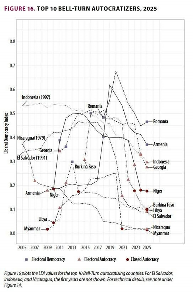 Վերադառնամ զեկույցին։ Արդեն ասել եմ, որ, օրինակ, «լիբերալ ժողովրդավարության ցուցիչով» մեկ տարվա ընթացքում Հայաստանը նահանջել է 10 հորիզոնականով՝ 76-ից դեպի 86-րդ։
