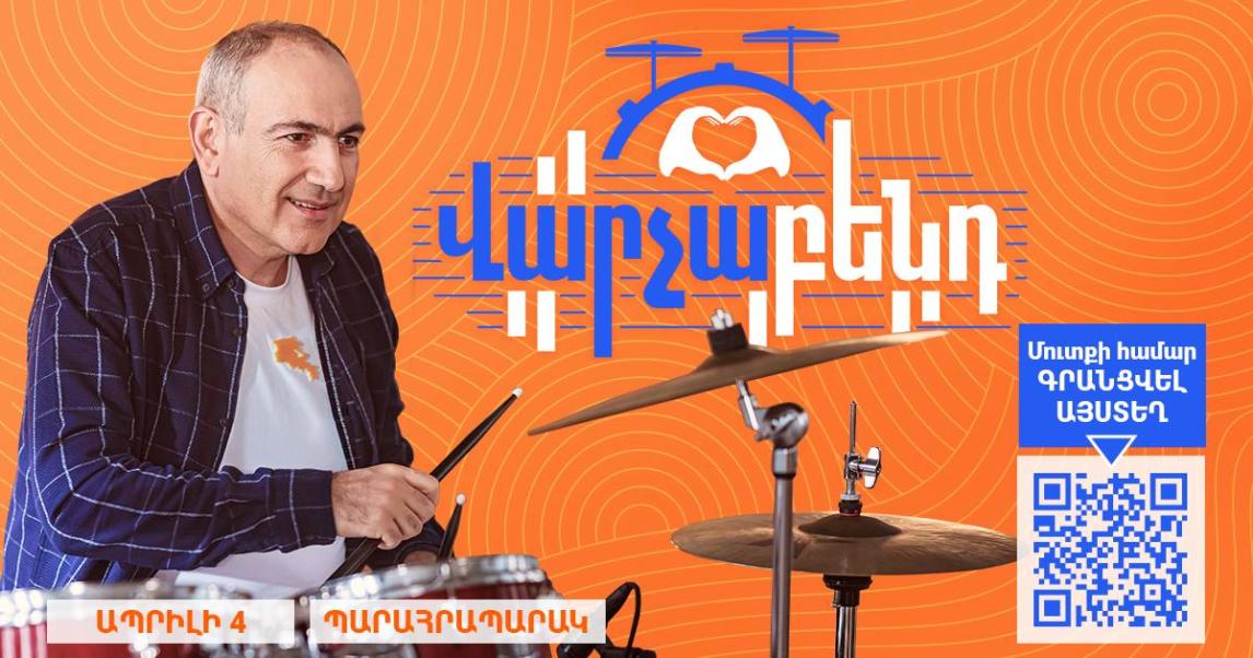 «Վարչաբենդի» համերգը տեղի կունենա ապրիլի 4-ին, ժամը 20.00-ին Երեւանի Կ. Դեմիրճյանի անվան մարզահամերգային համալիրի նախասրահում։ Այդ մասին հայտնում է Նիկոլ Փաշինյանը՝ նշելով, որ մասնակիցներո գրանցումը՝ QR կոդով։