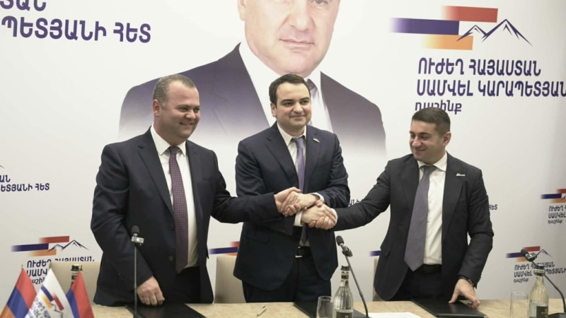 Այսօր «Ուժեղ Հայաստան» կուսակցության խորհրդի անդամ Նարեկ Կարապետյանը դաշինքի ստեղծման վերաբերյալ հուշագիր է ստորագրել «Նոր դարաշրջան» կուսակցության նախագահ Հարություն Հարությունյանի և «Միավորված հայեր» կուսակցության պատվավոր նախագահ, լիազոր ներկայացուցիչ Նաիրի Սարգսյանի հետ։