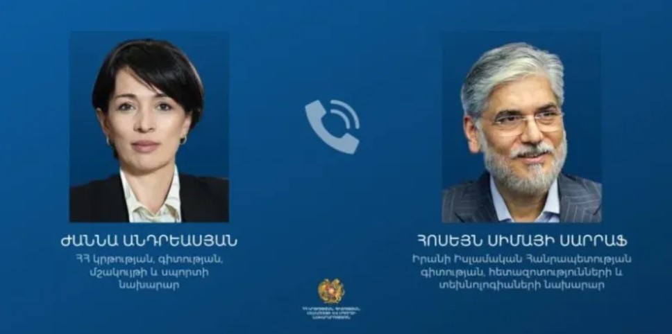 ՀՀ կրթության, գիտության, մշակույթի և սպորտի նախարար Ժաննա Անդրեասյանն այսօր հեռախոսազրույց է ունեցել Իրանի Իսլամական Հանրապետության գիտության, հետազոտությունների և տեխնոլոգիաների նախարար Հոսեյն Սիմայի Սարրաֆի հետ:
