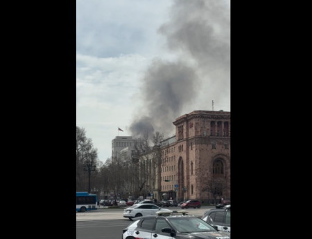 Սոնա Աղեկյանը ֆեյսբուքյան էջում զետեղել է կարճ տեսանյութ, որտեղ երևում է, որ ԱԳՆ-ն և ԿԳՄՍՆ-ն ընդգրկող կառավարական շենքերի համալիրի վերնամասից այս պահին սև ծուխ է ելնում: