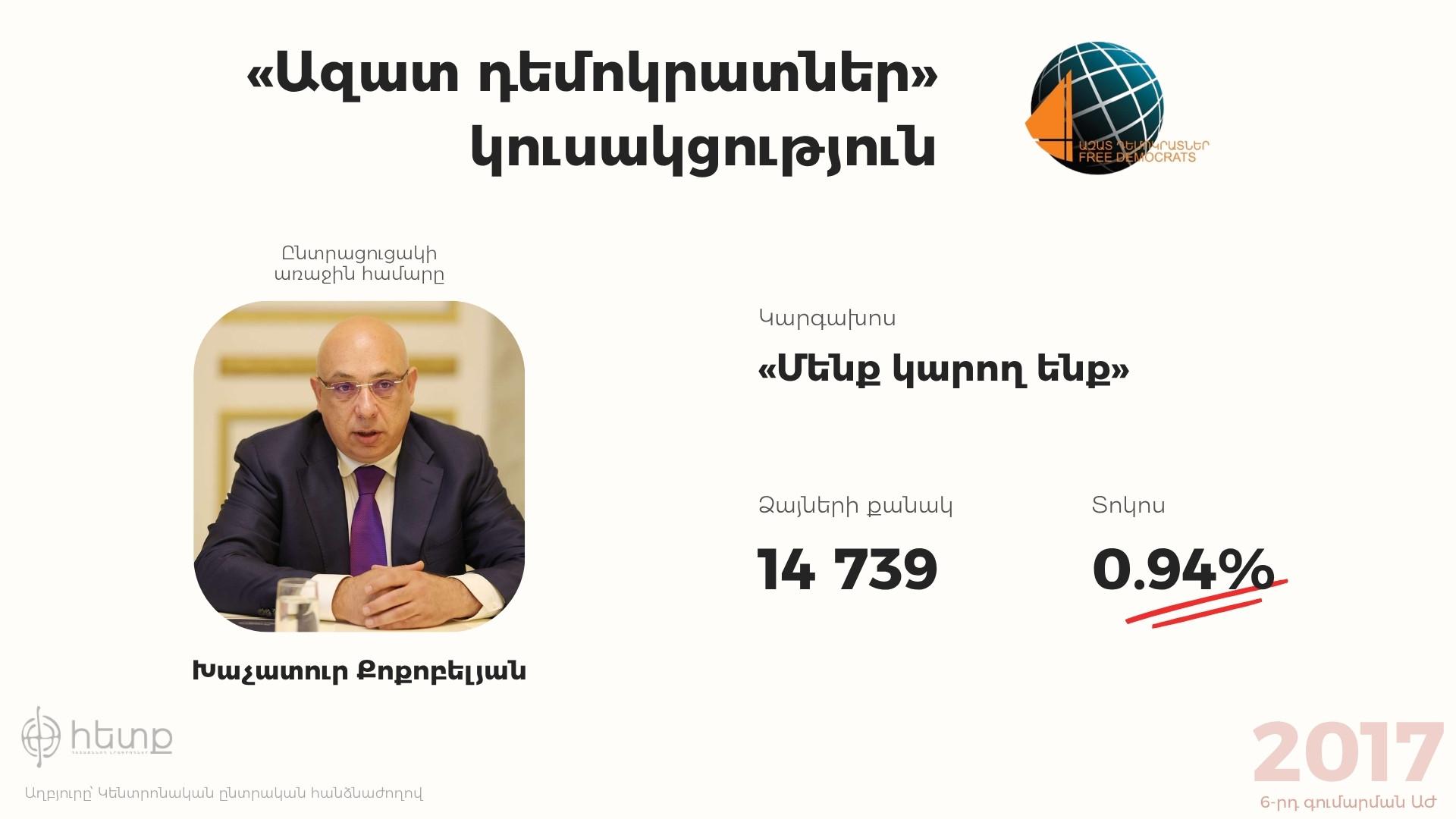 2017 թվականի խորհրդարանական ընտրություններին կուսակցությունը որոշեց մասնակցել առանձին՝ հանդես գալով «Մենք կարող ենք» կարգախոսով։ Ընտրական ցուցակը գլխավորում էր Խաչատուր Քոքոբելյանը, թիմին միացել էր նաև նախկին վարչապետ Հրանտ Բագրատյանը՝ իր գլխավորած «Ազատություն» կուսակցությամբ։ Նախընտրական քարոզարշավի ընթացքում ուժը շեշտադրում էր Հայաստանի դուրս գալը Եվրասիական տնտեսական միությունից և տնտեսական ազատականացմանն ուղղված բարեփոխումների իրականացումը։ Ընտրությունների արդյունքում կուսակցությունը ստացավ ձայների 0,94 տոկոսը (14.739 քվե), ինչը բավարար չէր պատգամավորական մանդատներ ստանալու համար։
