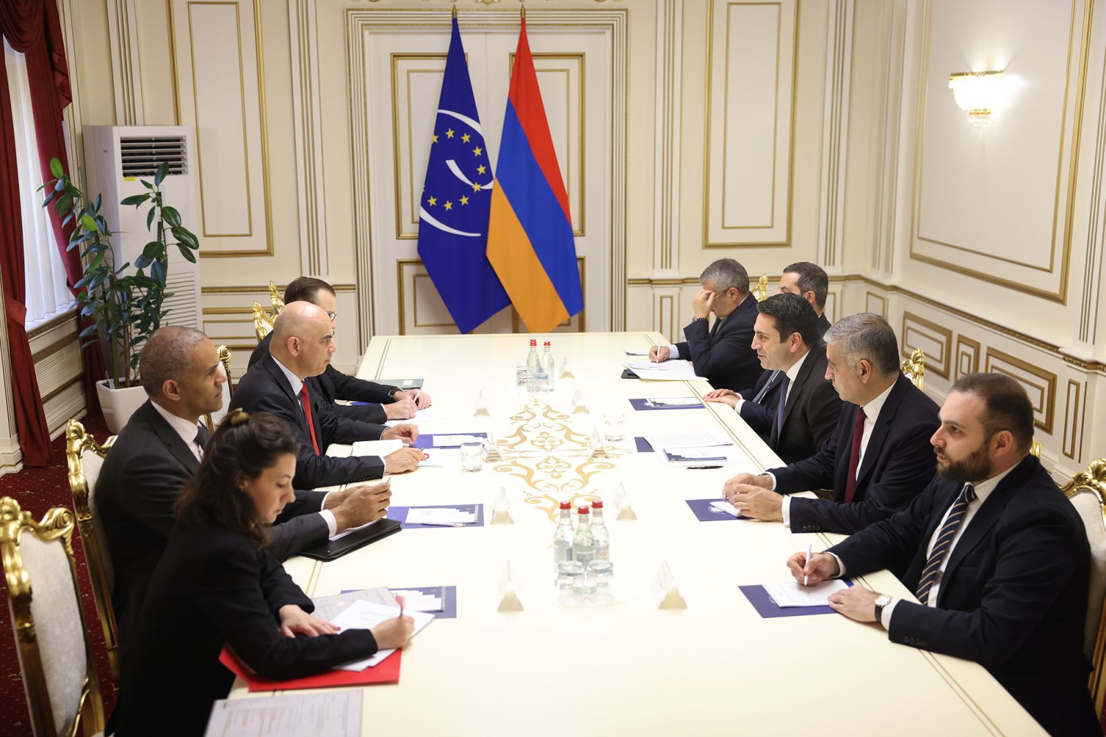 ՀՀ ԱԺ նախագահ Ալեն Սիմոնյանը հանդիպել է Եվրոպայի խորհրդի գլխավոր քարտուղար Ալեն Բերսեի հետ: Ողջունելով զրուցակցին՝ Ալեն Սիմոնյանը շնորհակալություն է հայտնել Եվրոպայի խորհրդի գլխավոր քարտուղարին՝ Հայաստան կատարած այցի համար: