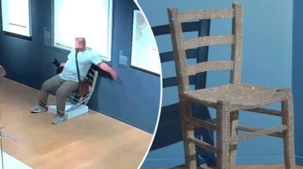 Սակայն տեսախցիկները ֆիքսել են, թե ինչպես են տղամարդն ու կինը, մենակ մնալով ցուցանմուշի հետ, սկսել լուսանկարվել աթոռի հետ։ Կինը թեքվել է՝ ստեղծելով այն պատրանքը, թե նստած է դրա վրա։ Ապա տղամարդը ավելի հեռուն է գնացել և իրականում նստել ցուցանմուշի վրա։