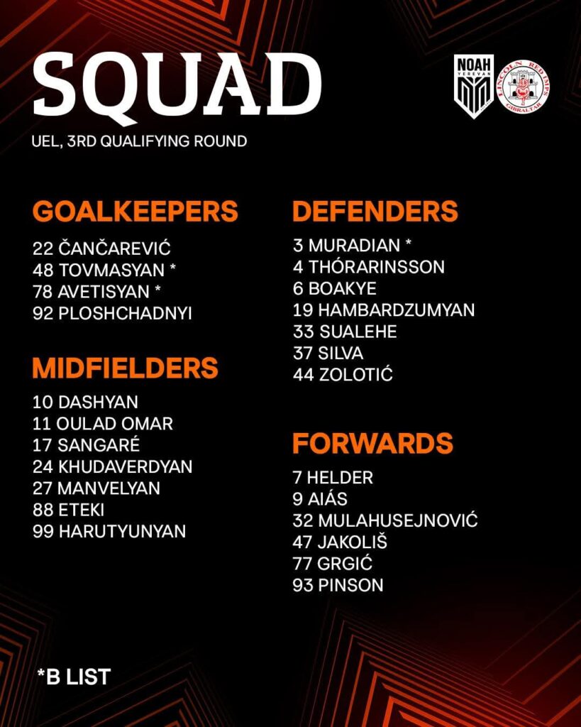 ՈւԵՖԱ Եվրոպա լիգայի 2025/26 թթ․ խաղարկության որակավորման երրորդ փուլում «Նոան» կմրցի Ջիբրալթարը ներկայացնող «Լինկոլն Ռեդ Իմպսի» հետ։