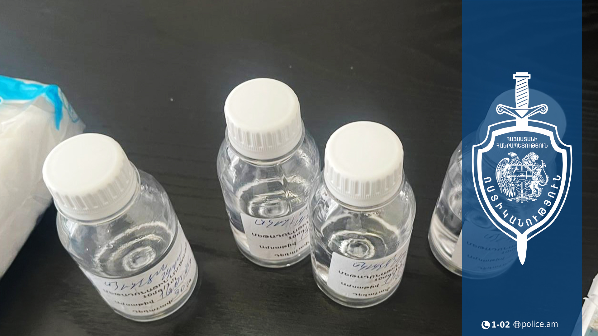 «Ձեռնարկած միջոցառումների արդյունքում օգոստոսի 8-ին մայրաքաղաքի Երվանդ Քոչարի փողոցում տղամարդը ձերբակալվել և ներկայացվել է վարչություն։ Նրա խուզարկությամբ հայտնաբերվել է 140 միլիգրամ տարողությամբ չորս տարա՝ մեթադոնային լուծույթով, և ծալովի դանակ։