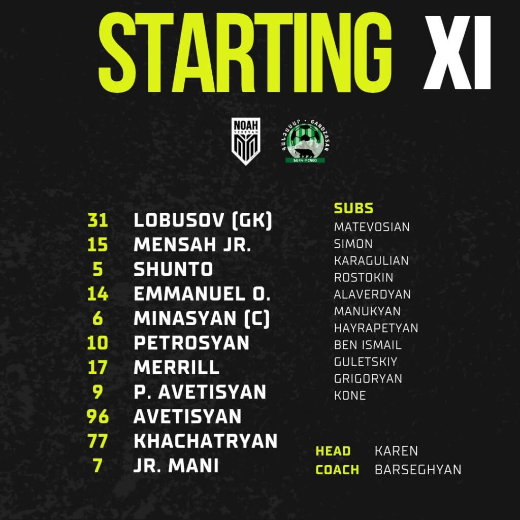 Թիմերը խաղադաշտ դուրս կգան հետևյալ կազմերով․