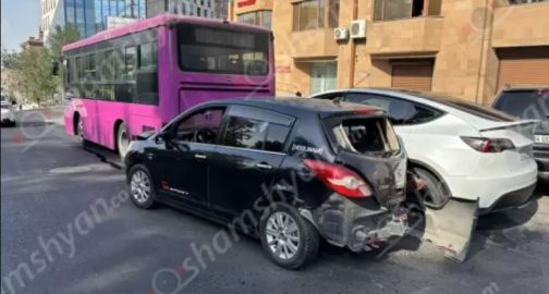 Այսօր՝ սեպտեմբերի 1-ին, ավտովթար է տեղի ունեցել Երևանում։ Ժամը 09:30-ի սահմաններում Ազատության պողոտայում՝ «Զովք» սուպերմարկետի դիմաց, բախվել են «Tesla»-ն, «Nissan»-ը և Երևանի քաղաքապետարանի հաշվեկշռում հաշվառված թիվ 10 երթուղին սպասարկող «Հագեր» մակնիշի ավտոբուսը։