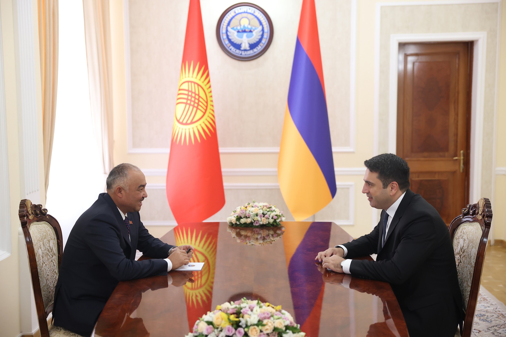 Երկու երկրների խորհրդարանների ղեկավարները նախ ունեցել են առանձնազրույց, որին հաջորդել է պատվիրակությունների ընդլայնված կազմով հանդիպումը: Ալեն Սիմոնյանը շնորհակալություն է հայտնել Նուրլանբեկ Տուրգունբեկ ուուլուին ջերմ ընդունելության համար՝ նշելով, որ ուրախ է լինել բարեկամ երկրում: Զրուցակիցների քննարկումների առանցքում է եղել միջխորհրդարանական կապերի զարգացմանը վերաբերող, ինչպես նաև երկկողմ հետաքրքրություն ունեցող հարցերի լայն շրջանակ: