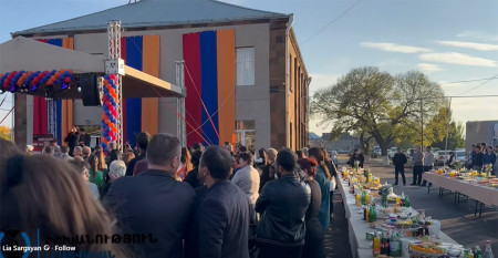 Բեմի վրա ելույթ ունենցավ Արգիշտի Մեխակյանը, ով շնորհակալություն հայտնեց բարեգործին և հայտարարեց, որ վաղը տեղի կունենա ֆուտբոլի դաշտի բացումը։