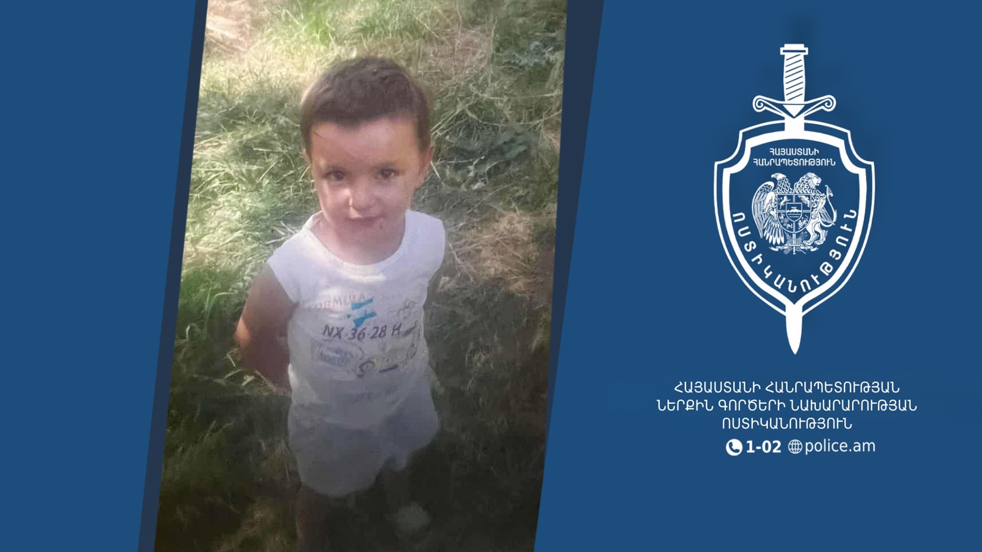 Երեխայի գտնվելու վայրի վերաբերյալ տեղեկություն ունեցողներին խնդրում ենք անմիջապես դիմել Ոստիկանության մոտակա բաժին, զանգահարել 1-02 կամ 911»,- ասված է հաղորդագրության մեջ։