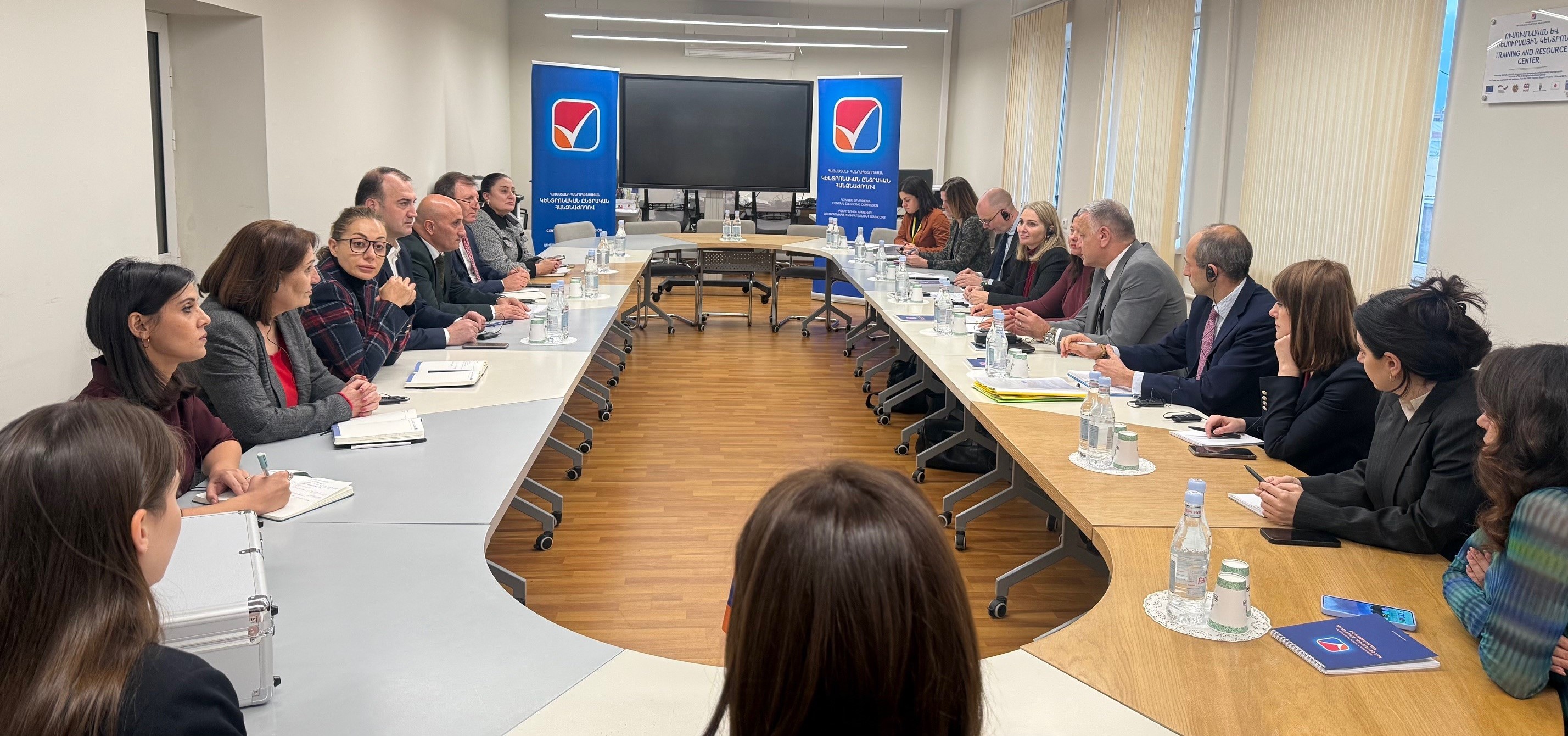 Հյուրերը ԱԺ 2026 թվականի հերթական ընտրություններին ընդառաջ հետաքրքրվել են ԿԸՀ նյութատեխնիկական հագեցվածության և պատրաստվածության մասին՝ փորձելով հասկանալ կառույցի կարիքները։ ԿԸՀ նախագահ Վահագն Հովակիմյանը ողջունել է հյուրերին և վստահեցրել, որ ընտրական համակարգը մշտապես պատրաստվում է համապետական ընտրություններին։ Հյուրերի քննարկման առանցքում էին նաև ընտրություններին ընդառաջ հնարավոր հիբրիդային սպառնալիքները և դրանց դիմակայելու համար ԿԸՀ գործիքակազմը։