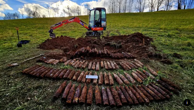 Հայտնաբերման մասին հաղորդում ստանալուց հետո նրանք գտել են ավելի քան 100 պատմական զինամթերք։ Գտածոն, հավանաբար, կապված է Երկրորդ համաշխարհային պատերազմի իրադարձությունների հետ։