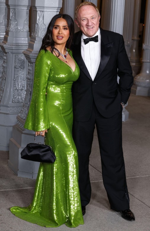 59-ամյա դերասանուհի Սալմա Հայեկը մասնակցել է 2025 LACMA Art + Film Gala-ին։ Նա կրել է երկար, վառ կանաչ Gucci զգեստ, որը ասեղնագործված էր փայլերով։ Զգեստն ընդգծում էր Հայեկի փարթամ կազմվածքը։ Դերասանուհին նաև կրում էր ադամանդներով և ռուբիններով զարդարված վզնոց։ Նա իր կերպարը լրացրել էր փոքրիկ սև ատլասե պայուսակով։