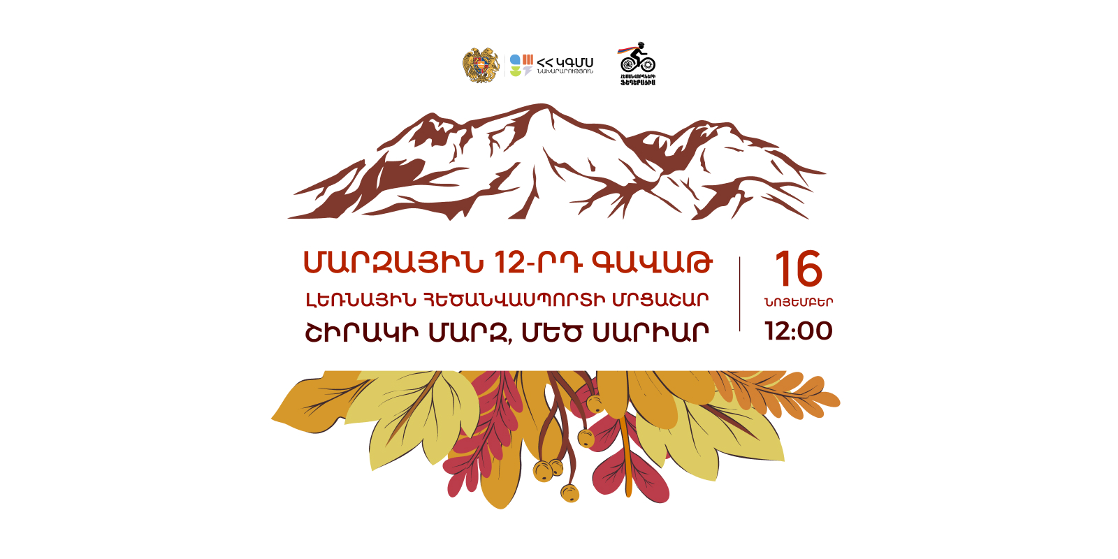 ՀՀ կրթության, գիտության, մշակույթի և սպորտի նախարարության աջակցությամբ և Հեծանվորդների ֆեդերացիայի նախաձեռնությամբ նոյեմբերի 16-ին Շիրակի մարզի Մեծ Սարիար համայնքում կանցկացվի «Մարզային գավաթ» լեռնային հեծանվասպորտի 12-րդ մրցաշարը։ Այս մասին տեղեկացնում են ԿԳՄՍՆ-ից:
