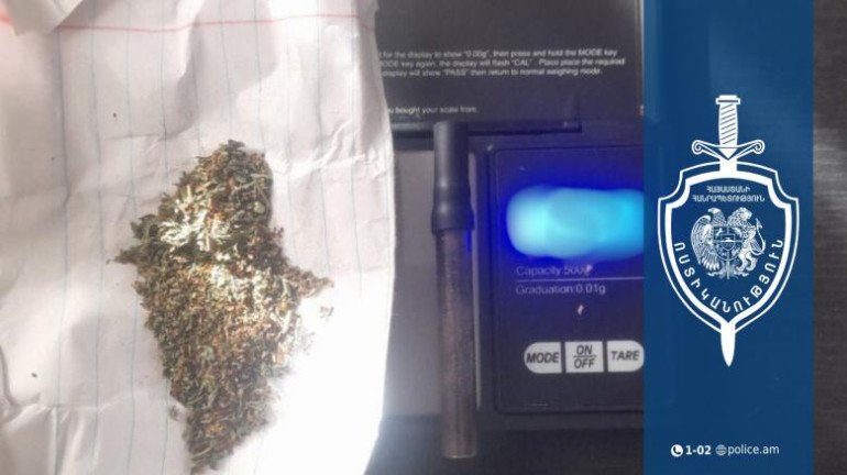 Քրեական ոստիկանության Շիրակի մարզային վարչության ծառայողները, իրացնելով օպերատիվ տեղեկությունները, նոյեմբերի 10-ին Գյումրի քաղաքի Տիգրան Մեծի փողոցում հայտնաբերել, ապօրինի թմրամիջոց ձեռք բերելու, պահելու և օգտագործելու կասկածանքով ձերբակալել և վարչություն են տեղափոխել 39-ամյա մի տղամարդու: