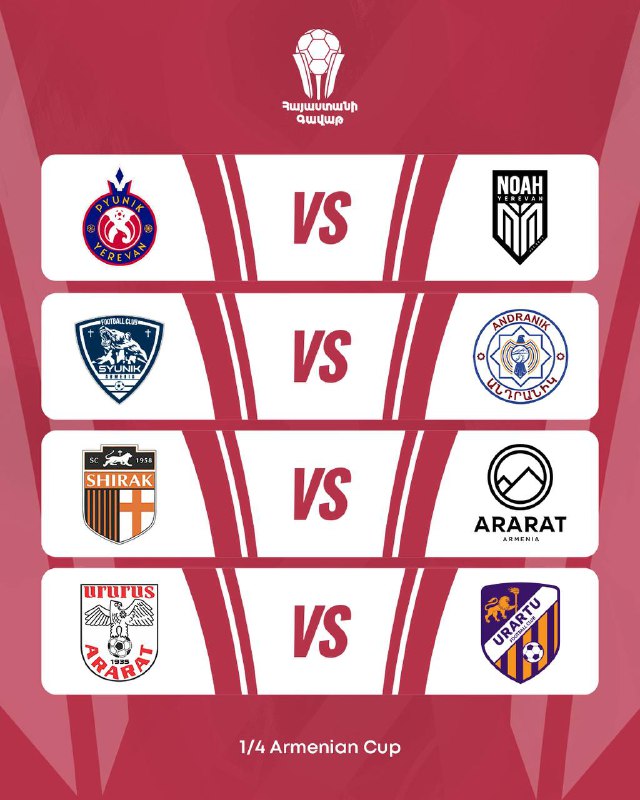 Հայաստանի Գավաթի խաղարկության 1/4 եզրափակիչի զույգերը հայտնի են։