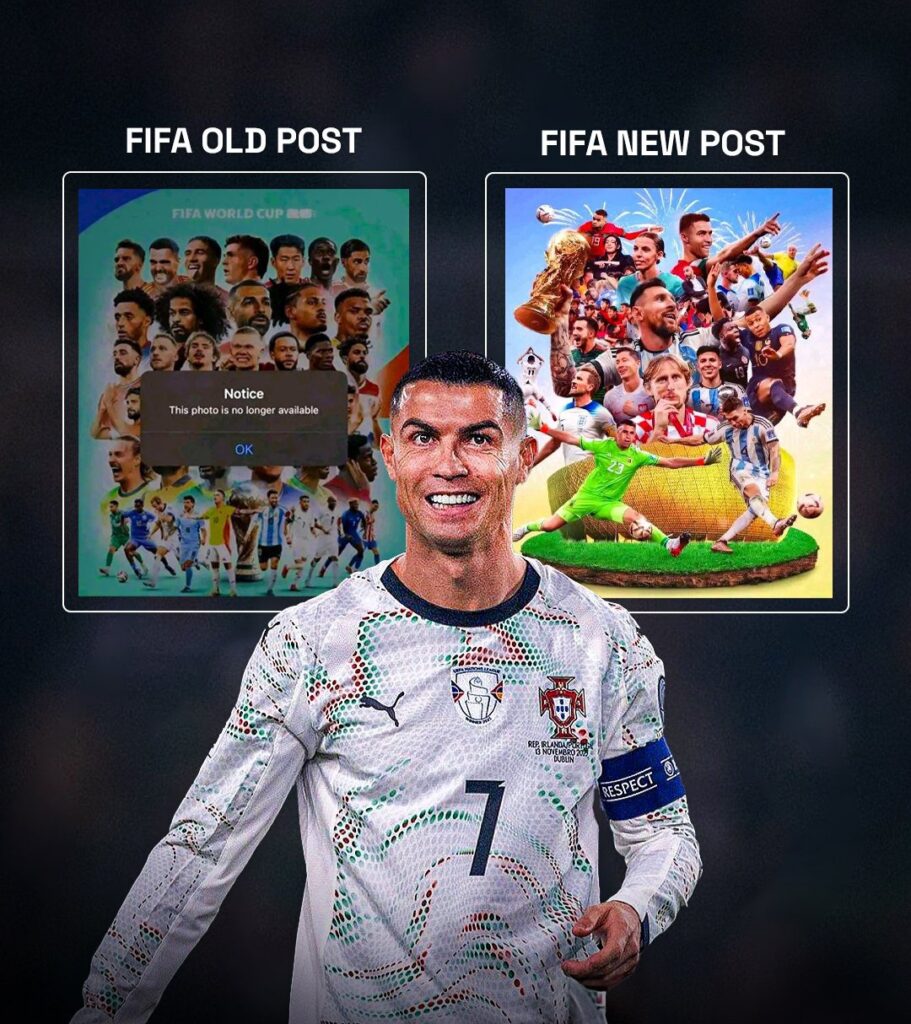 ՖԻՖԱ-ն հեռացրել է աշխարհի 2026 թվականի առաջնության առաջին պաշտոնական պաստառը՝ երկրպագուների քննադատության պատճառով։ Պաստառից բացակայում էր «Ալ-Նասրի» և Պորտուգալիայի հավաքականի հարձակվող ու ավագ Կրիշտիանու Ռոնալդուն։