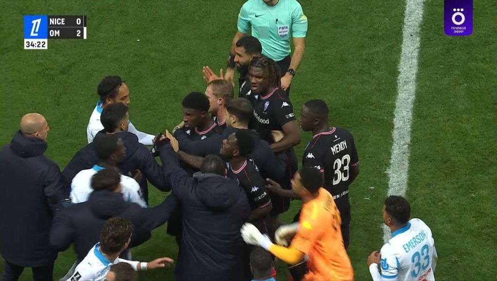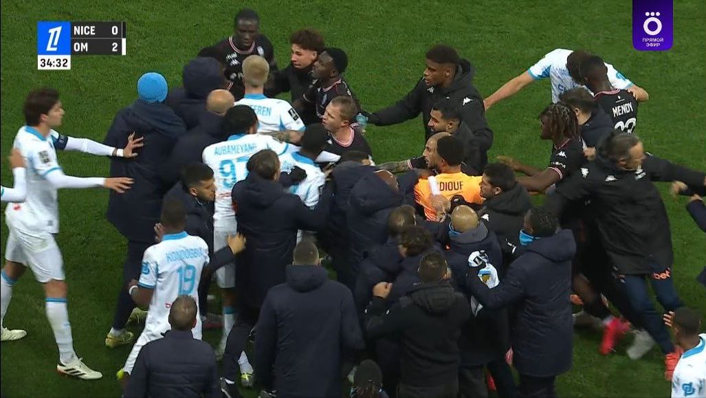 Հանդիպման 33-րդ րոպեին խաղն ընդհատվել է զանգվածային բախման պատճառով, որը ծագել է «Մարսելի» երկրորդ գոլից հետո։ Ինչպես հաղորդում է L’Equipe-ը, «Նիցայի» ֆուտբոլիստները պահանջել են չեղարկել գոլը և արձանագրել կանոնների խախտում հարձակման գծում՝ Օբամեյանգի կողմից։ Իր հերթին Օբամեյանգը վիճաբանության մեջ է մտել մրցակիցների հետ, ինչն էլ վերածվել է քաշքշուկի։